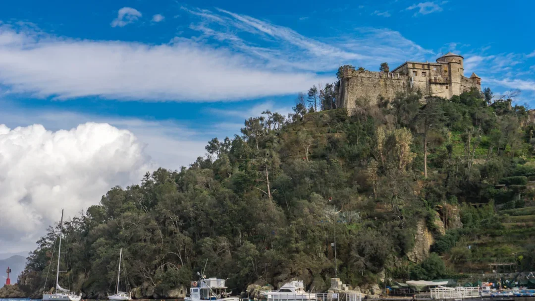 Jak dojechać: samochodem (parking 5-6 euro/h) lub promem z Santa Margherita Ligure
